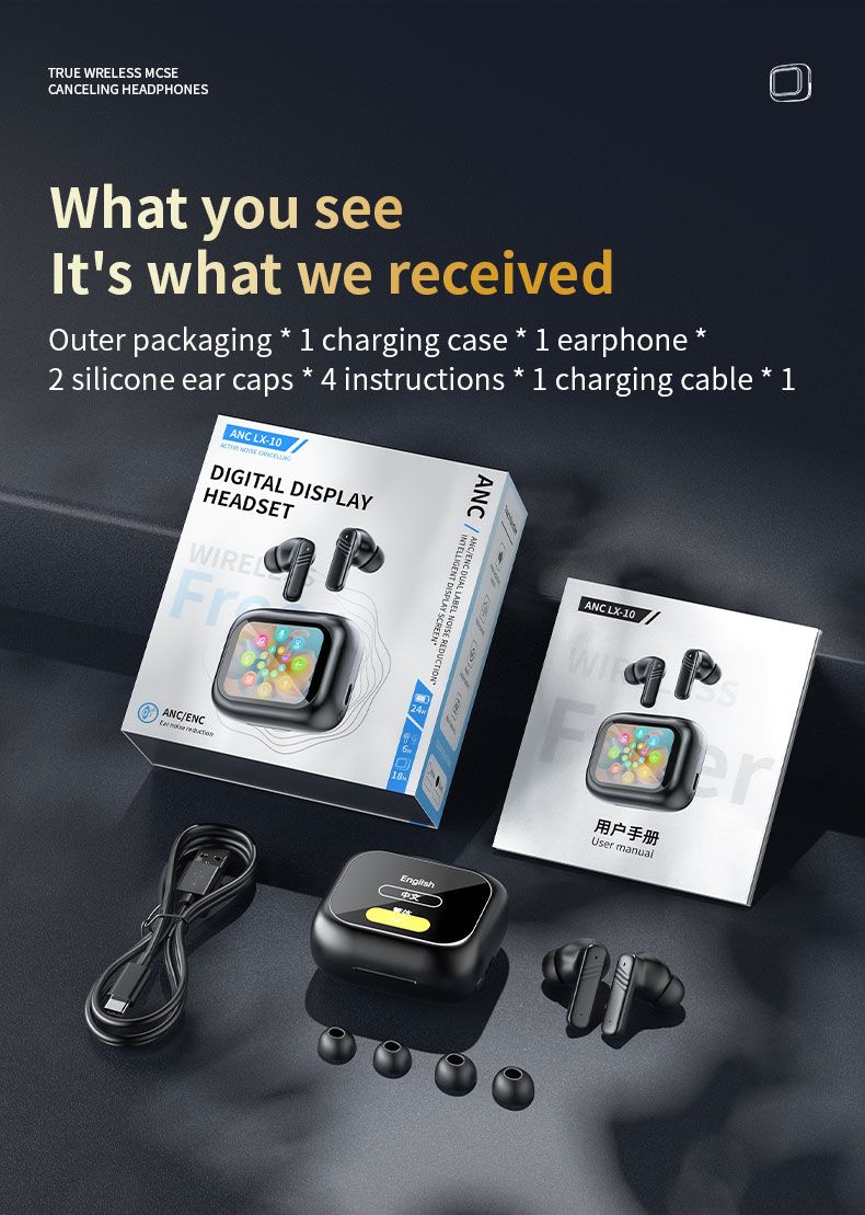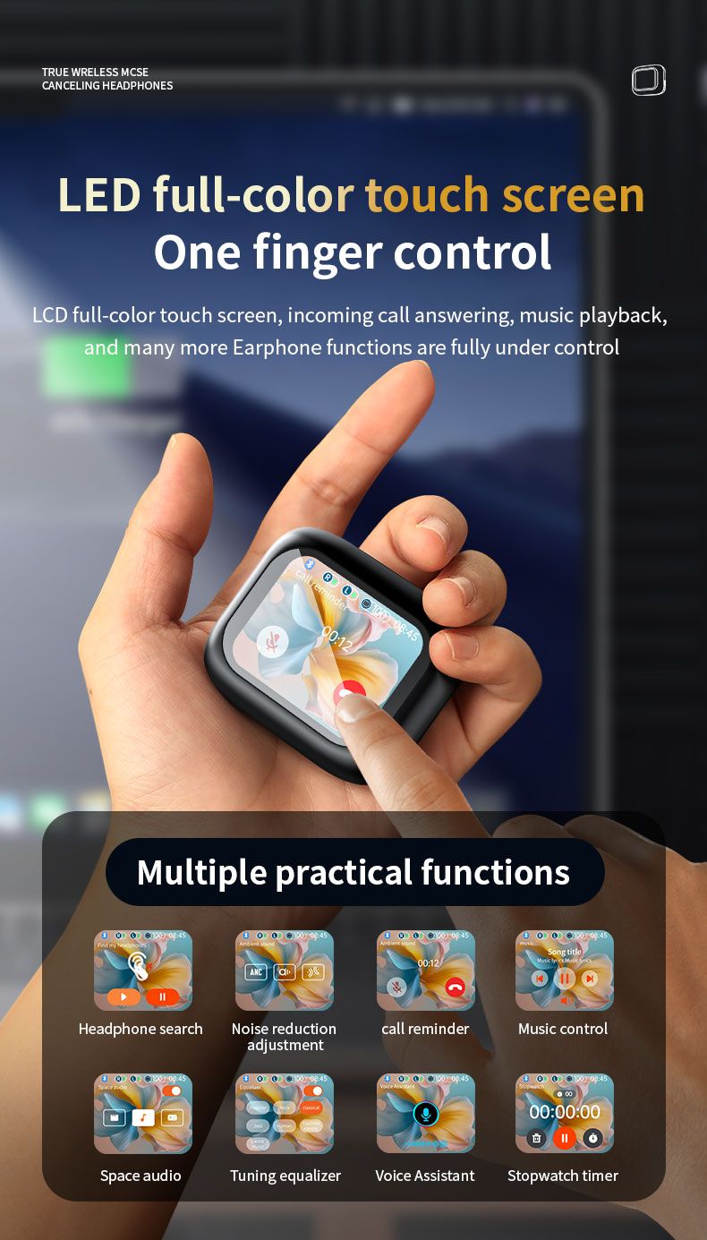 LCD Full-Color Touchscreen TWS Earbuds | ANC Noise Canceling 3-Mode Wireless Headphones with Hi-Fi Stereo Sound